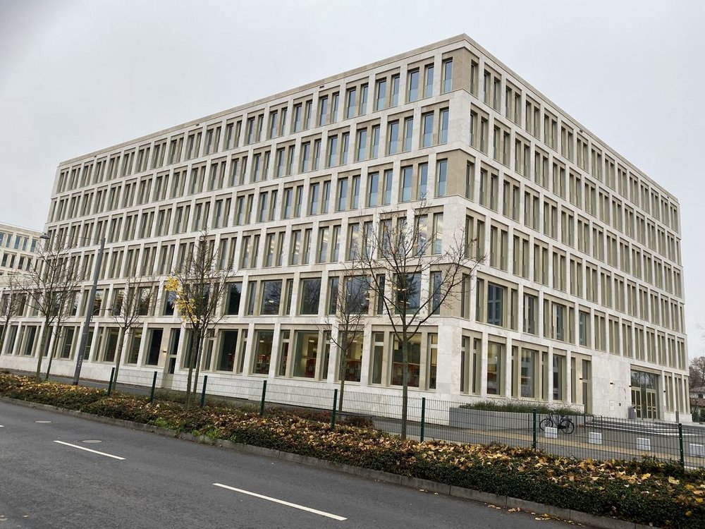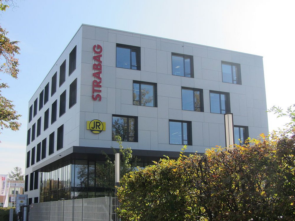 Verwaltungsgebäude STRABAG RegensburgVerwendetes Produkt: der HÜWA-Bock 500 (Sechsbein) mit Beton-Kunststoff-Fuß