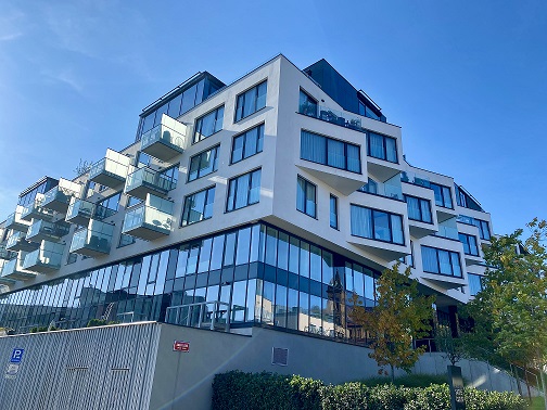 The Flow Building, PragHier wurden HÜWA-WBT (Wellbeton), HÜWA-BUR und HÜWA-Unterstützungskorb verarbeitet.